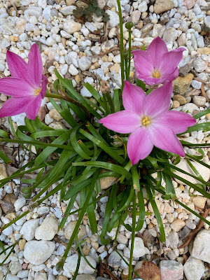 | Unfortunately, I don't have the name of this zephyranthes, but it's the only double bloom I've seen |